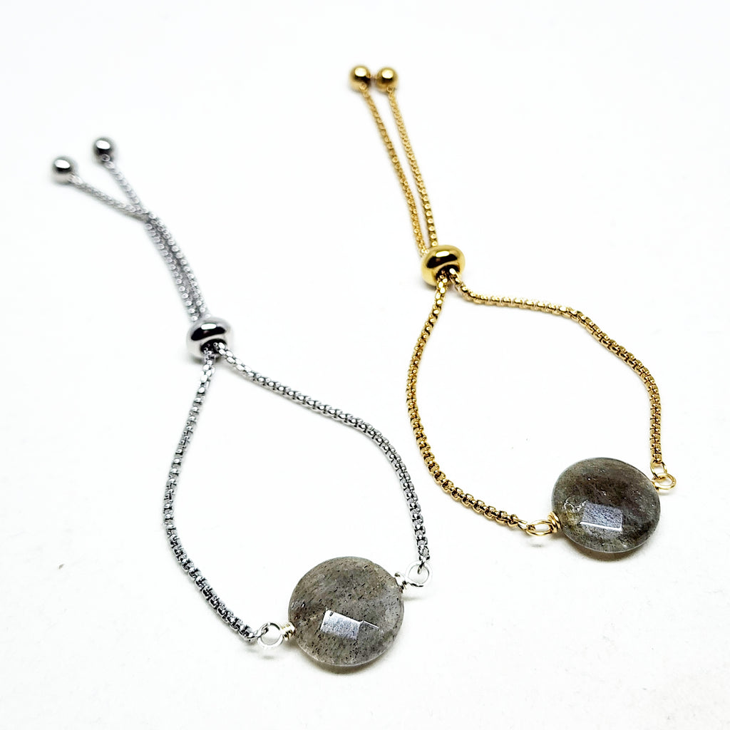 Labradorite is often associated with clarity and protection. Easy to wear and endlessly versatile, this adjustable labradorite bracelet brings a touch of calm confidence to your daily look.